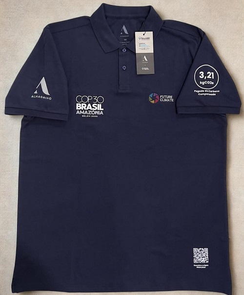 Mas não bastava medir e não informar. Como símbolo desse movimento e de toda ação realizada, uma das camisas da coleção Almagrino foi usada pela equipe da Future Climate durante a COP30, em Belém. A peça, uma camisa polo, trouxe o valor da sua pegada de carbono estampado na manga, além de um QR Code de rastreabilidade com informações sobre toda a cadeia produtiva do vestuário, até mesmo a fazenda em que o algodão foi cultivado.