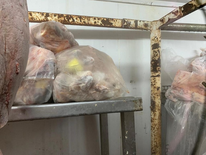 Durante a fiscalização realizada na quinta-feira, 16 de outubro, as equipes encontraram um cenário alarmante de descaso com a saúde pública. Nos fundos do estabelecimento, esgoto corria a céu aberto, e faltavam produtos para a higienização das mãos dos funcionários. Além disso, não havia um local adequado para guardar os pertences pessoais dos trabalhadores, e a câmara fria apresentava condições precárias, com carnes armazenadas em contato direto com o chão.
