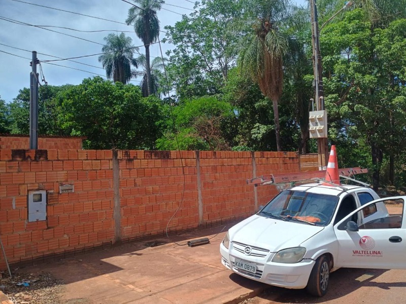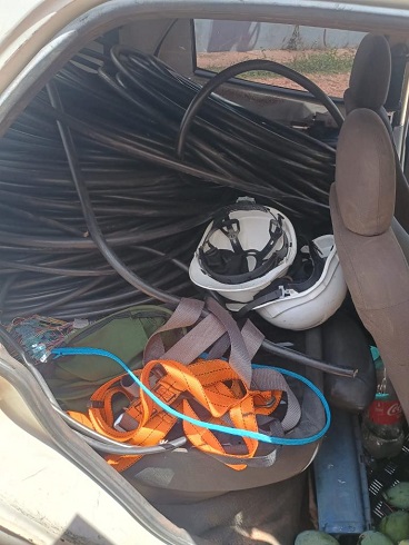 Com base na informação, os policiais realizaram diligências e conseguiram localizar o carro na área do bairro São Benedito. Quando avistados, um dos homens estava em cima da escada, cortando os cabos.